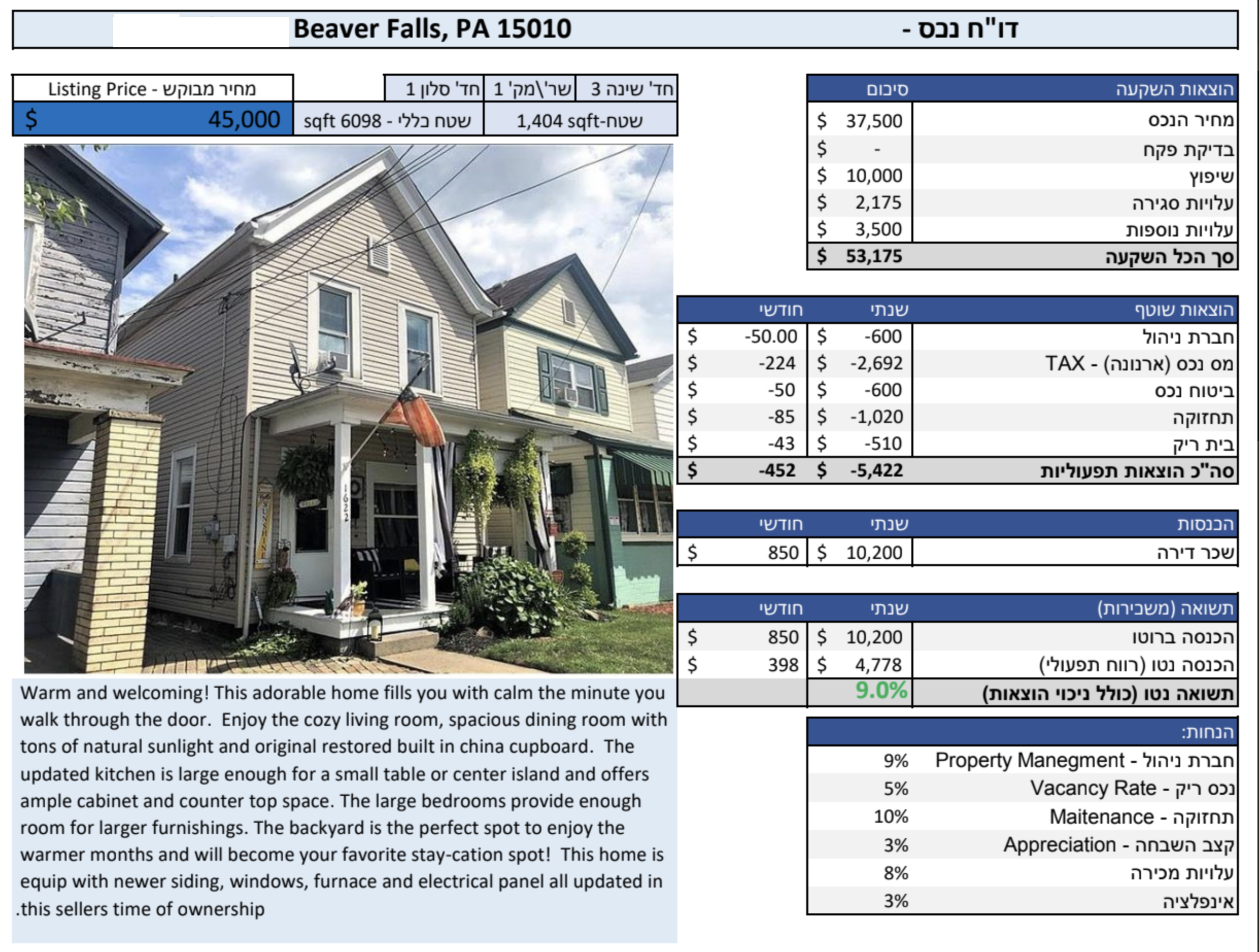 • נכס שיצא למכירה ב45,000$ ואנחנו קנינו ב37,500$
