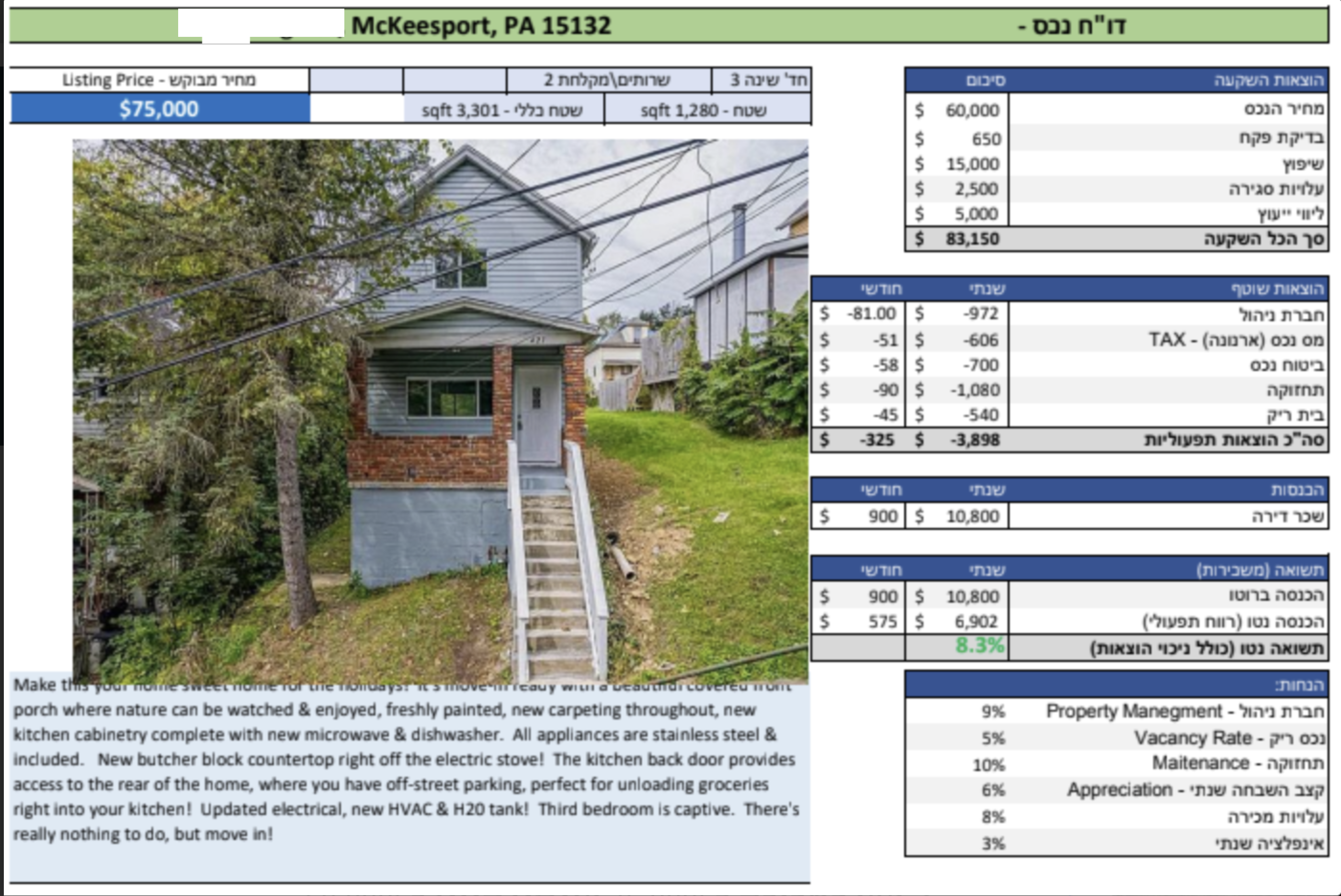 - יצא למכירה ב75,000$ ואנחנו קנינו ב60,000$