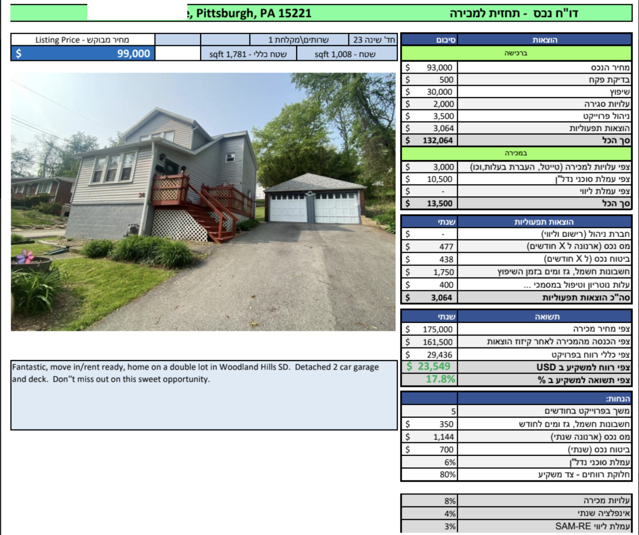 • יצא למכירה ב99,000$ ואנחנו קנינו ב93,000$.